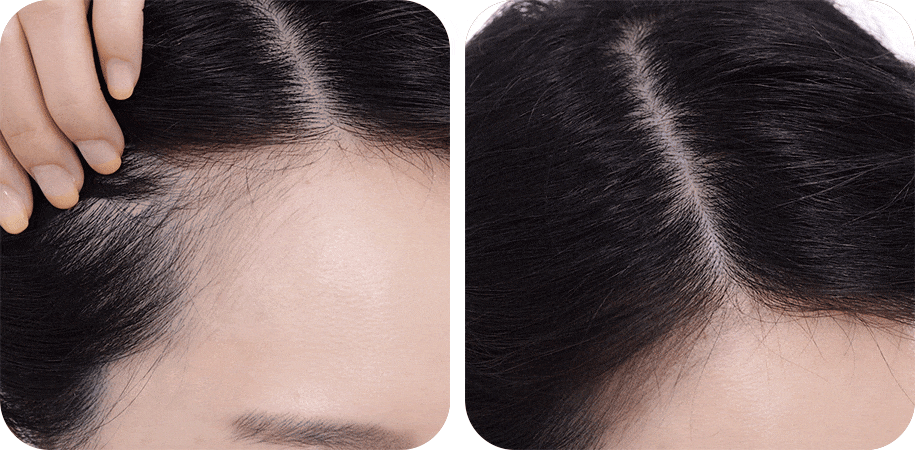 Используйте аппликатор для нанесения необходимого количество продукта и растушевывания по линии волос.